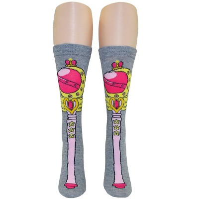 Who needs a transformation process, anyway? You can slip on these socks and instantly transform into your version of a Sailor Scout. In addition to the bow, these comfortable socks include blue and yellow accents.