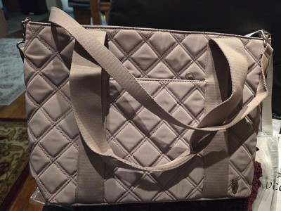 [This review was collected as part of a promotion.] Love love love this tote. I’ve been looking for a tote that will retain its shape and not be so heavy when carried. This one is perfect…and I love the black cherry color and fabric (quilted). I’m looking forward to many travels with it!