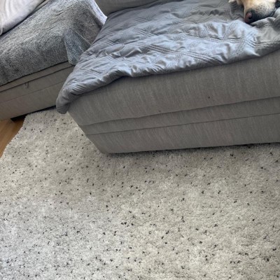 A: The rug features a chic, elegant salt and pepper-inspired design, perfect for modern decor.