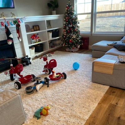 A: The rug has a high pile height, greater than 1 inch, offering soft cushioning.