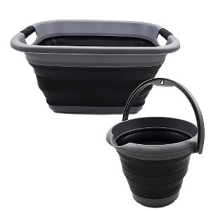 SAMMART 2 pcs Set : 25L (6.6 Gallon) Collapsible Plasic Laundry Basket & 5L (1.32 Gallon) Collapsible Bucket