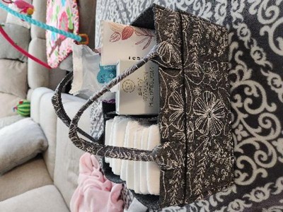 I ordered a few diaper caddies and had to return them because they were way too big and ugly material. I finally found the perfect diaper caddy when I received this one! The size is perfect, not too big not too small, it's a medium size and it fits all you baby stuff. The material and designs are lovely. I absolutely love it and couldn't be happier with my purchase.