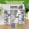 - The walk-in door allows you to easily step inside for cleaning, feeding, and spending quality time with your feline friends, while the secure latch helps protect against predators.
