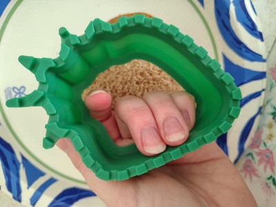 This is a very cute sandwich cutter. It is great for making peanut butter and jelly sandwiches for lunchboxes. You can use just the cutter part, or also use the green part to pinch the sides to make a mess free handheld sandwich. I did find that the size was a little too big for standard sandwich bread. It was otherwise easy to use and clean.