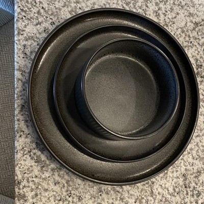[This review was collected as part of a promotion.] The Sango Anderson Black 12-piece dinnerware set is a stylish and practical addition to any kitchen. With a sleek matte black finish and contemporary design, it brings a modern touch to everyday dining. The stoneware is durable and feels substantial without being too heavy, making it perfect for both casual meals and entertaining guests. Each piece—dinner plates, salad plates, and bowls—is well-proportioned and dishwasher and microwave safe for added convenience. The color and finish hold up well over time with minimal scratching or fading. While it may show water spots if not dried immediately, its overall quality and aesthetic outweigh this minor drawback. A great value for those seeking durability and elegance in their tableware. Highly recommended.