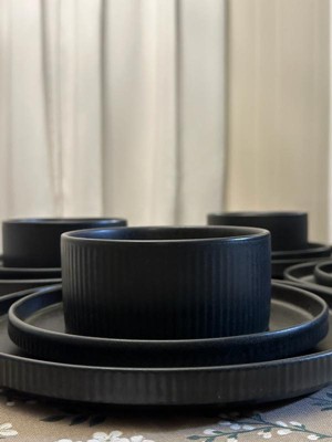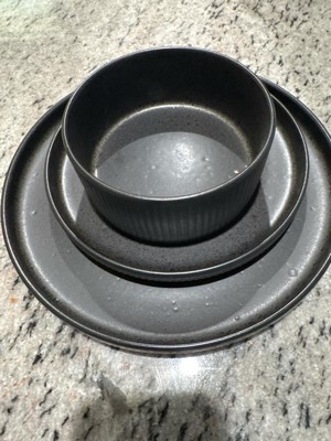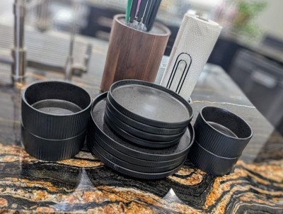 [This review was collected as part of a promotion.] The Sango Anderson Black 12-piece dinnerware set is a stylish and practical addition to any kitchen. With a sleek matte black finish and contemporary design, it brings a modern touch to everyday dining. The stoneware is durable and feels substantial without being too heavy, making it perfect for both casual meals and entertaining guests. Each piece—dinner plates, salad plates, and bowls—is well-proportioned and dishwasher and microwave safe for added convenience. The color and finish hold up well over time with minimal scratching or fading. While it may show water spots if not dried immediately, its overall quality and aesthetic outweigh this minor drawback. A great value for those seeking durability and elegance in their tableware. Highly recommended.