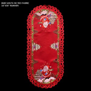 Product Name: Santa Red Embroidered Cutwork Rectangular Table Runner, 15 by 34 inch