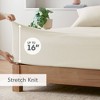 - Flexible Fit: The fitted sheet’s stretch-knit construction provides a snug, stay-in-place fit on mattresses up to 16" deep.