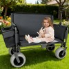 This foldable wagon is highly practical with a 2-in-1 seat and cargo design. The padded base and side zippers make outdoor rest more convenient.