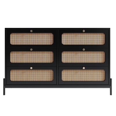 Product Name: Sapphtopaz 6 Drawers Dresser for Bedroom Modern Storage Cabinet Rattan Drawers Chest of Drawers for Bedroom, Living Room, Black(15.7*47*30inch)