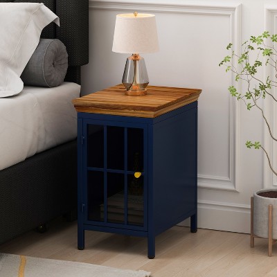 Product Name: Sapphtopaz Night Stand Set 1 with Storage Cabinet and Solid Wood Tabletop Bedroom Decor with Glass Door Bedside Table for Bedroom, Living Room, Blue