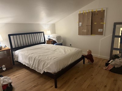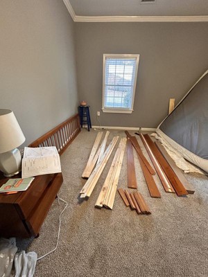 Got this bed frame almost 60% off, so obviously I clicked “buy” before my brain caught up. Looked adorable in the listing. Arrival: THE BOX IS HEAVY. The only time I’ve wished for a husband was while PIVOT-ing this boulder into my house. Shoutout to FedEx for leaving it as far from the door as possible. Unboxing: Everything was packed great, hardware nicely labeled. Only annoyance—none of the slats were labeled, so I studied the pictures like I was prepping for an exam before figuring out which wood was which. Assembly: HAVE A CORDLESS DRILL. Directions were clear, every piece labeled, very “see picture, do picture.” Hardest part was the headboard (another moment I wished for a man in my life). Final thoughts: Use a CORDLESS DRILL unless you enjoy hand-screwing 900 tiny slat screws. Once it’s together, it’s sturdy, cute, and totally worth it.