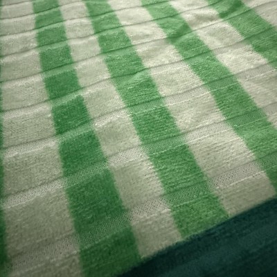Sardines beach towel is made of 100% cotton terry fabric. I like the Sardine print with green stripes and black borders. It is fun and different. The measurements areb 72in L x 36in W, not as big as other beach towels that I have but it works for me.