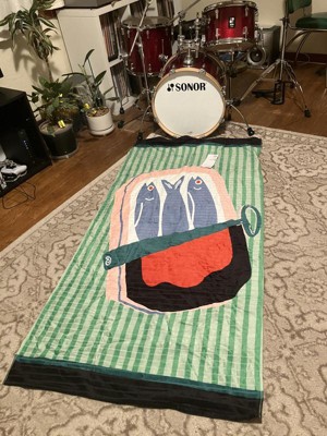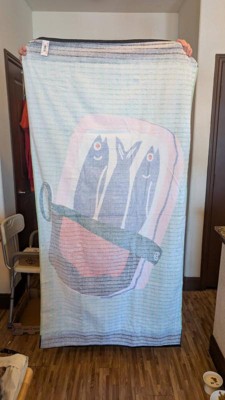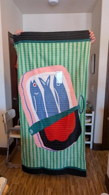 This is the coolest little - I mean BIG - towel! Beach towel does not begin to cover it. While I have seen slightly bigger towels in life, this sardine forward design really takes the cake for best towel. The quality is really nice too. You could dry quite a few children before it got too damp to be useful. But really, you just want this towel to be seen, it’s a beautiful artistic print.