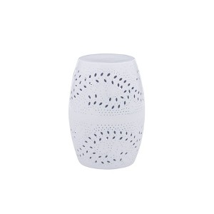 [This review was collected as part of a promotion.] i love the look of Bright White Drum Side Table its very sturdy made great quality its a bright white color with fern type pattern that goes all along it and goes perfect with my farm house chic décor I absolutely love that the top portion is not to big or small and can hold cups or a small lamp and it not wobbly so you don't have to worry about tipping or falling