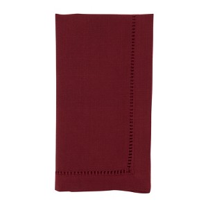 [This review was collected as part of a promotion.] I really like these Classic hemstitch border cocktail cloth napkin. The material is great and the design and has on each of the napkins. The stitching is really great also holding up pretty well.. My family really likes these napkins and the burgundy color, It is a set of 12 napkins. I have washed and dryed the napkins and no shrinking or fading.