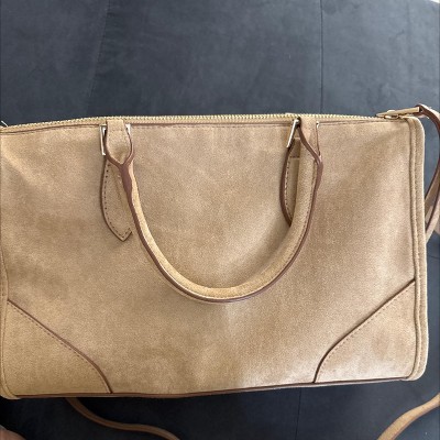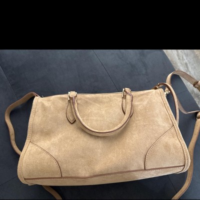Bought this bag in the tan suede, and I love it! It's the perfect size and color and so soft! All my daily items fit and I still have plenty of room for other stuff.