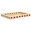 Introducing the Sati Tray, a unique and artistic addition to any room decor. This tasteful piece combines vibrant yellow hues with striking burgundy squares, showcasing a material blend of resin and MDF for a lightweight feel. Its eye-catching design features a visually deceptive pattern that creates an intriguing optical illusion, complemented by a sophisticated faux wood pattern throughout the tray's surface.