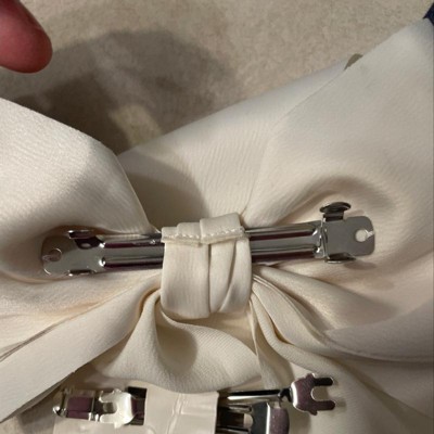 A: The barrette is designed with a big satin bow and long tails for added charm.