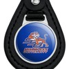 - QUALITY MATERIAL: Our durable round keychain is crafted from leather with a glossy resin-topped emblem featured design shown on one side. Approximately 1.5" (3.8cm) x 2.5" (6.4cm) in overall size, emblem is 1" (2.5cm)..
