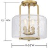 A perfect blend of traditional and contemporary creates the classic, timeless design of the Avalon. This ceiling fixture is an excellent fit for your transitional, traditional, or modern farmhouse decor style. The solid, circular ceiling plate holds a frame of three bold vertical bars, flat round finial, and inner, 3-light structure with metal candle covers —all with a rich, warm brass finish. One large drum-shaped shade is made of delightful, clear, crackled glass. Within the glass shade, three 60W, C-style bulbs provide plenty of illumination. The Avalon measures 11.5” wide and 12.25” high, with a semi-flush mounting: ideal for your living room, dining room, kitchen, family room, bedroom, foyer, great room, closet, office, or hallway.