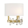 Give your home its flowers with the whimsical Savoy House Dahlia 1-light sconce. Its streamlined structure is decorated with clear crystal flowers to create a look that is always fresh and fun, whether the light is on or off. Finished in warm brass with a white shade. Dahlia is 9.25" in height, 9" in width and extends 5" from the wall. It uses 1 candelabra size bulb of up to 60 watts (bulb not included).