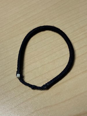 I received product reimbursement in exchange for my honest review. This is a basic pack of black elastic hair ties. They have a strong hold and don't stretch out too easily. I found that initially, two loops were too loose, and three felt a little too tight. The material doesn't catch or snag my hair.