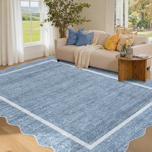 Scalloped Edge Area Rugs for Living Room Bedroom Modern Washable Rug Soft Non Slip Low Pile Carpet Home Decor