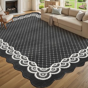 Scalloped Edge Area Rugs Modern Washable Bordered Geometric Soft Rug for Living Room Bedroom