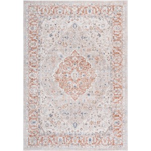 Accents won't go overlooked with this stylish 4x6 feet area rug in a blend of beige, ivory and rust hues. Showcasing a small rectangular shape, it is indeed a perfect pick to sprinkle elegance in your interiors. This transitional style area rug, crafted in Turkey exemplifies meticulous attention to detail. It is power loomed with a dense pile height of 5/8 inches, bringing a plush feel underfoot. Made of a durable blend of 93% Polyester and 7% Polypropylene, it guarantees enduring beauty year after year. Add this impeccably designed rug to your space for a sophisticated update and watch your room come alive.