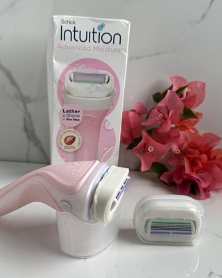 [This review was collected as part of a promotion.] The Schick intuition advanced moisturizing razor works great. I like that there is a moisturizing blade. You don't need to use shaving cream and it's very easy to use.