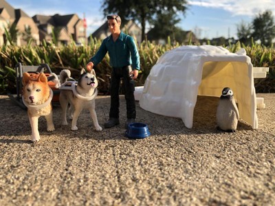 [This review was collected as part of a promotion.] There are so many fun possibilities for this fun set! The dogs are adorable and the penguin chick is cute as can be. There is a slide on the igloo for the penguin to slide down and a little see saw on the bottom! So fun! The dogs attach easily to the sled for fun exploring in the ice and snow!