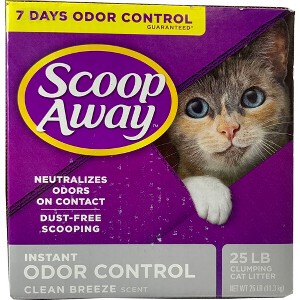 Get instant odor control with Scoop Away Clumping Unscented Cat Litter is designed for powerful odor control to handle the most extreme litter box odors for 7 days guaranteed. This clumping clay is a dust free scooping litter that forms tight clumps to make dealing with the cat box fast and easy. Plus, the odor fighting antimicrobial agents on the litter eliminates odor from urine, feces and bacteria on contact, and a paw-activated fresh scent is released every time kitty uses the box for 5X the Odor Protection. This dust free scooping cat litter helps keep surfaces cleaner and air clearer with your cat’s health and happiness in mind.