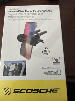 I received a Universal Vent Mount for Smartphones made by Scosche. I thought it would be a great product but this particular holder was weak and hard to use. The design is pretty basic in that you insert the 2 vent clips onto the car vents to maintain its weight and support. My Chevy car has vents that are slightly curved so it did not lay completely flat. Also it takes 2 hands to open the phone holder and secure it in place. Other phone holders have a push button that opens the wide holder automatically and can be completed with a single hand. This phone holder was difficult to open and keep open while placing your phone inside. The only thing that I liked about this phone vent mount was the rubber holding the phone securely in place. My phone felt tight and locked. It never fell off or got loose.