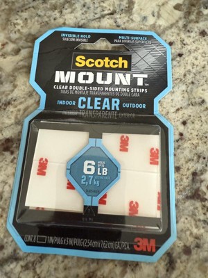 [This review was collected as part of a promotion.] I received the product free from 3M. The "Scotch-Mount Clear Double-Sided Mounting Tape" did not work well for me. It stuck to the main surface of what I applied it to well, but sticking anything else onto the open adhesive side would stay on no longer than a few minutes. When taking it off the main surface, the tape left a slight residue on that surface, but there was no damage to it.