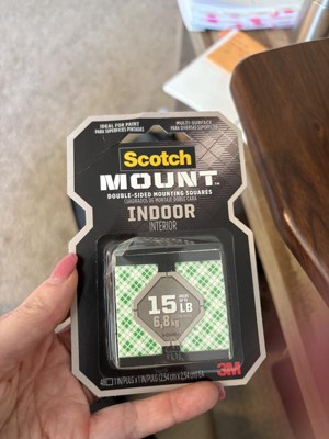[This review was collected as part of a promotion.] Scotch Mount Indoor double sided mounting squares is super easy to use for anything that you want to hang that is less than 15 pounds. It is very easy to apply to the surface that you want to hang something and the double sided tape is easy to apply. This would be great for teachers in their classrooms or for decorating a child's room or college dorm. I highly recommend to friends and family and will continue to buy