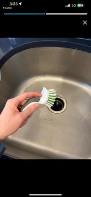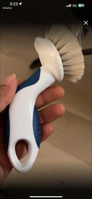 - RINSES CLEAN: Messes won’t get stuck in the bristles, this dishwashing brush easily rinses clean, even cheese and eggs won’t stick.