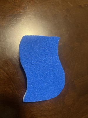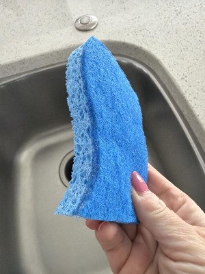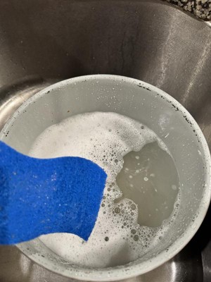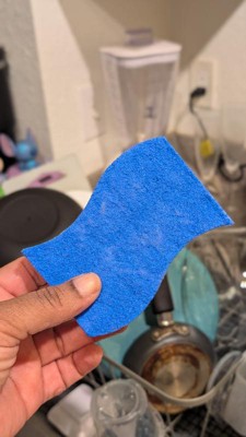 [This review was collected as part of a promotion.] This scrubber is a very good to clean non-stick dishes that need some TLC. When dishes have hard food crust this works well. It cleans the dishes with not too much effort and is gentle on surfaces. The sponge side is good for regular cleaning and the dark blue side is good when you need extra help.