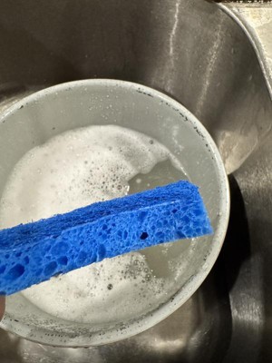 [This review was collected as part of a promotion.] These sponges are really nice. The 3-pack is nice. I like that they are two sided, one soft side and one harder/scrubby side for tough built on food. These sponges don’t scratch when scrubbing dishes or pots and pans. I received this product for free in exchange for my opinion.
