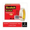Scotch Transparent Tape, 3" Core, 0.75" x 72 yds, Transparent, 2/Pack