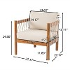 The Scott Living Coastal Haven 4-Piece Outdoor Seating Set brings natural warmth and modern coastal style to any outdoor space. Crafted from solid acacia wood with a rich, textured finish, it features handwoven rope accents for added comfort and visual appeal. Plush beige cushions with removable, weather-resistant covers provide inviting relaxation—perfect for patios, balconies, or backyard lounging. Durable, stylish, and comfortable, it elevates any outdoor retreat.