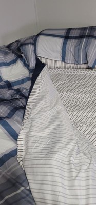 [This review was collected as part of a promotion.] This is a great set to have on hand. It has a very soft and warm comforter and it fits the queen bed perfectly. The print is a beautiful blue and what plaid and the sheets are a fun blue and white strip. everything fits into a zipper package and is easy to store as well. Perfect for making my guest feel like they are at a 5 star hotel.