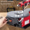 This 16-inch variable speed scroll saw is engineered for precise woodworking projects, featuring an extra-large worktable made of sturdy steel that ensures stable support during cutting. The worktable can be tilted from 0° to 45°, allowing you to effortlessly