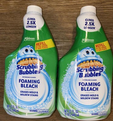 - Penetrating foam spray clings 2.5X longer and erases mold and mildew stains, Soap scum remover leaves behind a brilliant shine to your surfaces, Unique trigger dispenses a bleach foam that clings to your bathroom surfaces, Scrubbing Bubbles Foaming Bleach easily removes soap scum, mold, and mildew stains, Great tile and grout cleaner, bathtub cleaner, and shower cleaner, Foaming spray nozzle makes it easy to get to all those hard to reach places