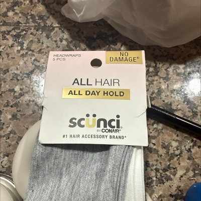 scünci No Damage Stretch Fabric Headbands - Black/White/Grays - All Hair - 5pcs