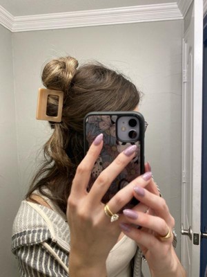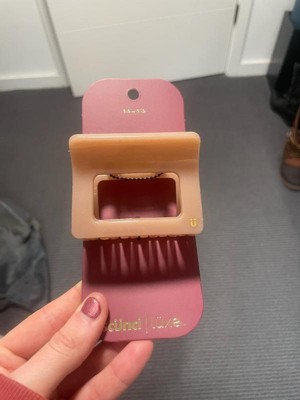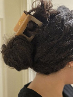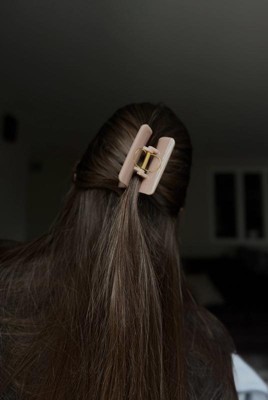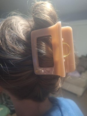 [This review was collected as part of a promotion.] This is the perfect size clip for when you wanna throw your hair up bc you’re multi tasking throughout the day and don’t want your hair in the way! It’s neutral so it goes with everything and it clips nicely and is good quality so it doesn’t pull your hair when you take it out and it’s not difficult or resistant when you open and close it! It’s silent when you clip it too! It also looks nice as a date night clip too