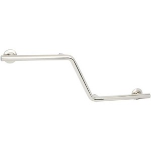 The Zuma Grab Bar is ergonomically engineered with a distinctive Z-shaped design, providing angled support for enhanced comfort and stability in any bathroom setting. Featuring two 16-inch horizontal gripping sections connected by a gentle 120-degree bend, it promotes smooth transitions between sitting and standing while reducing strain on joints and muscles. Crafted from high-quality, solid #304 stainless steel, the Zuma Grab Bar resists rust, corrosion, and daily wear-ensuring easy maintenance and long-lasting performance in wet environments. Precision-formed from a single welded piece and hand-finished, it delivers both aesthetic appeal and structural integrity. Measuring 38 inches in length, the bar includes a 11/4-inch diameter for a secure, comfortable grip and a 11/2-inch wall clearance for easy access and maneuverability. Concealed 3-inch mounting flanges provide a seamless, elegant appearance that complements a wide range of bathroom décors. Built for both residential and commercial use, the Zuma Grab Bar is available in left- or right-handed configurations and comes in polished (mirror-like shine), satin (subtle brushed texture), and matte black (modern statement) finishes. It complies with Federal specification WW-P-541/8b and meets ADA load requirement, supporting more than 250 pounds when properly installed-ensuring reliable stability for daily use. Ideal for homes, healthcare facilities, hotels, nursing homes, or anyone aging in place, recovering from surgery, or managing mobility challenges, the Zuma Grab Bar helps prevent slips and falls while supporting independence. Assembled and tested in the USA, it is made from fully recyclable materials and contributes to LEED v4 credits in its finished form, offering a secure, stylish, and eco-conscious solution to bathroom safety. Complete with mounting hardware for quick and secure installation, the Zuma Grab Bar combines modern design, durability, and peace of mind-where support is needed most.
