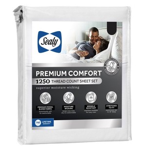 Treat yourself to a night of luxury and silky soft comfort with the best sheets you’ll ever own. The Sealy Premium Comfort Sheet Set is a 1250 thread count, luxurious modal blend fabric that offers a silky soft hand feel with a moisture wicking finish to keep you cool, dry and comfortable all night long. Generous stretch fit sides can accommodate mattress up to 18 inches deep. This set is machine washable and comes with the Sealy Certified Lifetime Warranty for peace of mind. This sheet set includes a flat and fitted sheet along with one or two pillowcases.