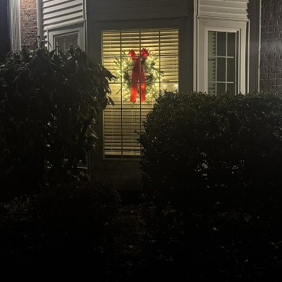 With its increased volume of sparkling lights, much more than typically found on wreaths of similar size, the Dandan Pine shines with a glistening glow. It has a mixed tip design featuring lifelike molded PE branches that create a remarkably realistic holiday decoration. The branches are pre-strung with a total of 150 warm white LED lights that are both energy efficient and long-lasting. Wreath is plug-in and includes 6 hours ON/18 hours OFF timed operation. This wreath can be displayed on door, wall or window in indoor or outdoor settings.