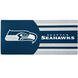 Game day is here! Dont be the only one not showing support. Place this mat in front of the door to welcome friends and family to the home. Sure to incite cheers of fellow fans, it makes the perfect gift for anyone who spends their days checking the score. Crafted from heat-sublimated polyester with a rubber backing, this versatile mat is designed to fit perfectly within Evergreen's switch doormat bases. The mildew resistant mat is ideal for indoor or outdoor use and features a skid-resistant backing to help keep it in place. This welcoming mat will freshen up your stoop season after season while ensuring your home stays debris-free. For stains, simply spot clean with soap and warm water.